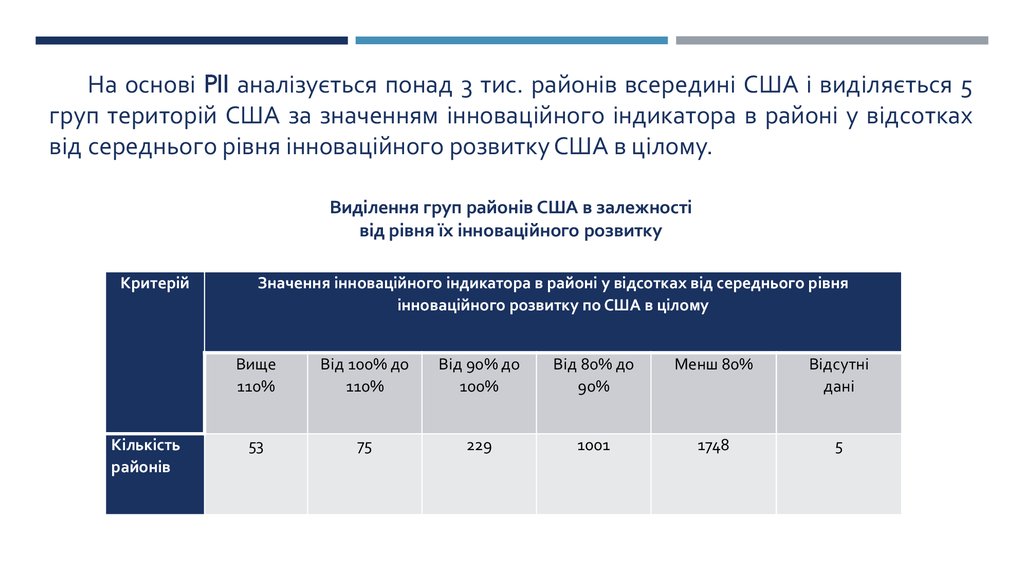 1. Зведений індекс інноваційного розвитку американських регіонів (штатів і округів) (PII, Portfolio innovation index)