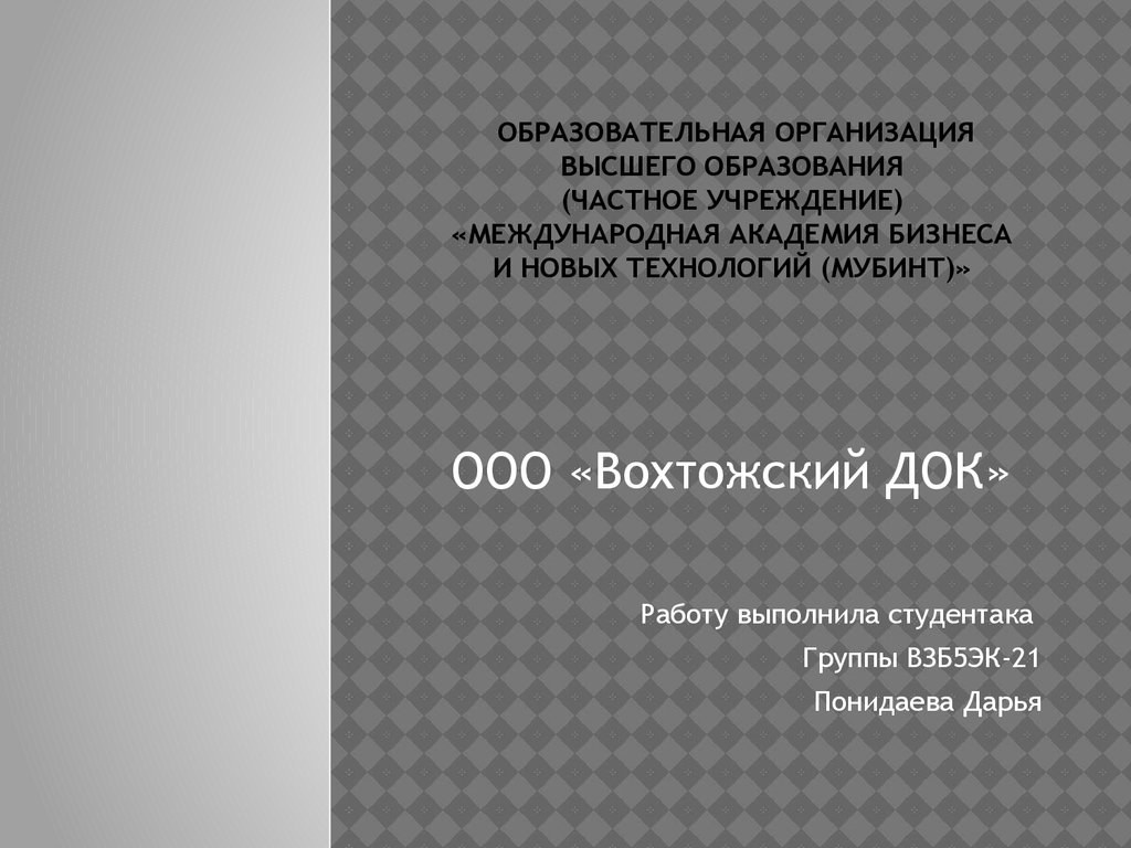 ОБЩЕСТВО С ОГРАНИЧЕННОЙ ОТВЕТСТВЕННОСТЬЮ"ВОХТОЖСКИЙ ДЕРЕВООБРАБАТЫВАЮЩИЙ
