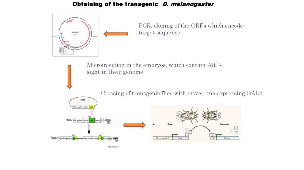 Obtaining of the transgenic D. melanogasterPCR, cloning of the ORFs which encode