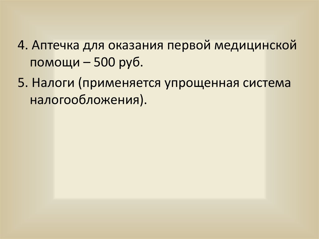 4. Аптечка для оказания первой медицинскойпомощи – 500 руб.