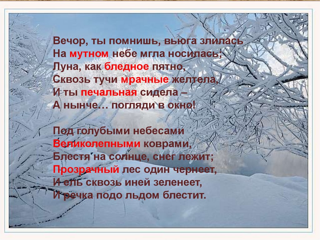 Вечор, ты помнишь, вьюгазлилась