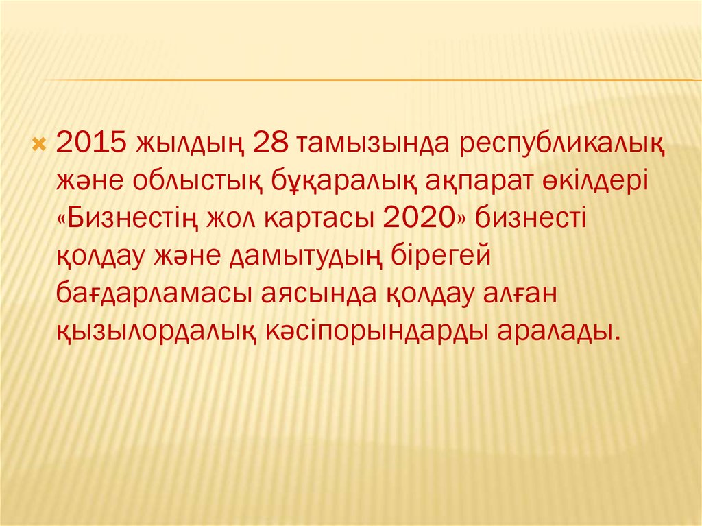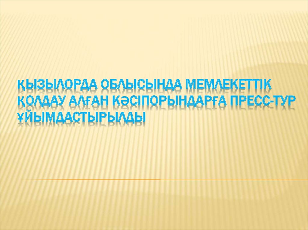 1. ҚЫЗЫЛОРДА ОБЛЫСЫНДА МЕМЛЕКЕТТІК ҚОЛДАУ АЛҒАН КӘСІПОРЫНДАРҒА ПРЕСС-ТУР ҰЙЫМДАСТЫРЫЛДЫ