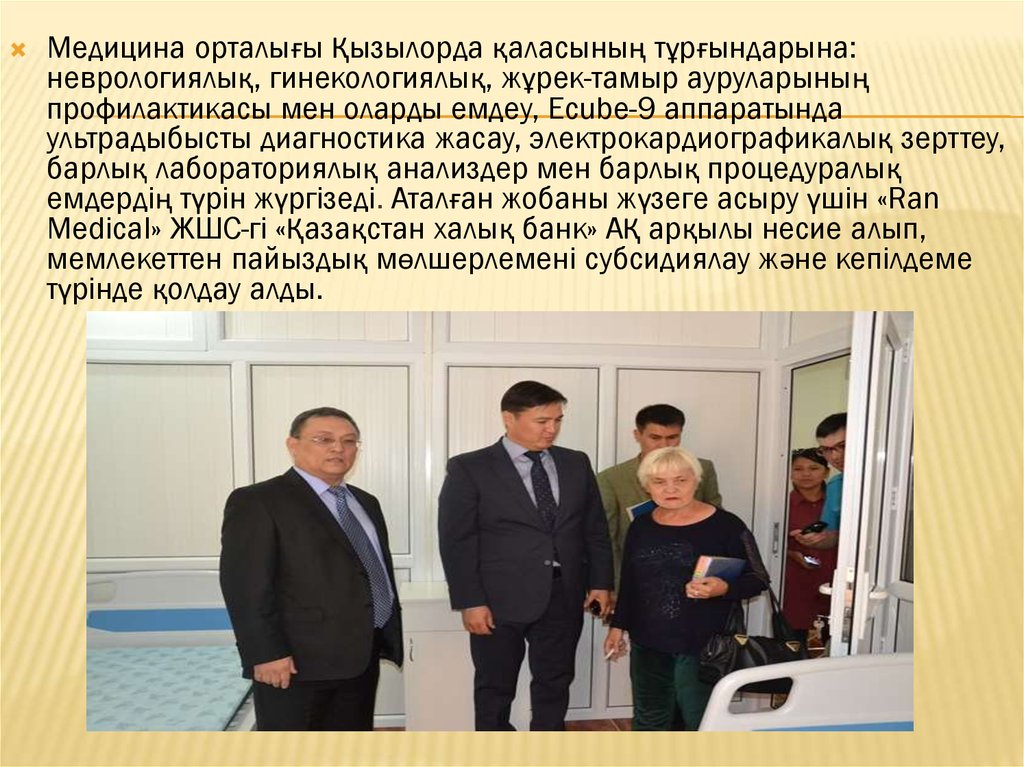 Медицина орталығы Қызылорда қаласының тұрғындарына:неврологиялық, гинекологиялық, жұрек-тамыр ауруларының