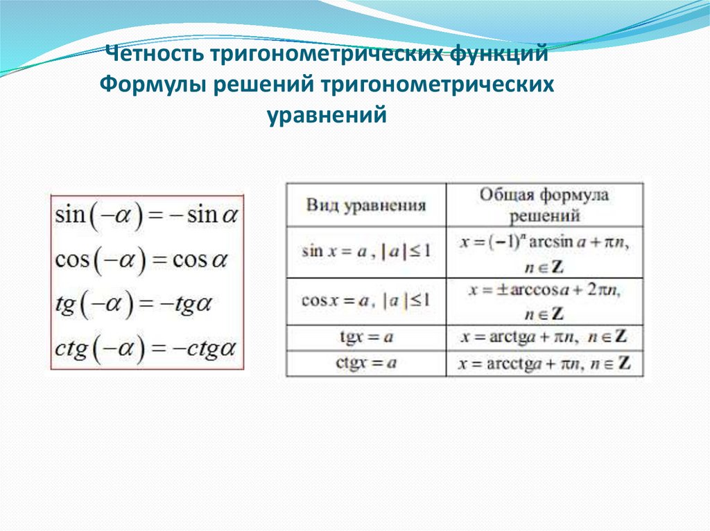 Четность тригонометрических функцийФормулы решений тригонометрических