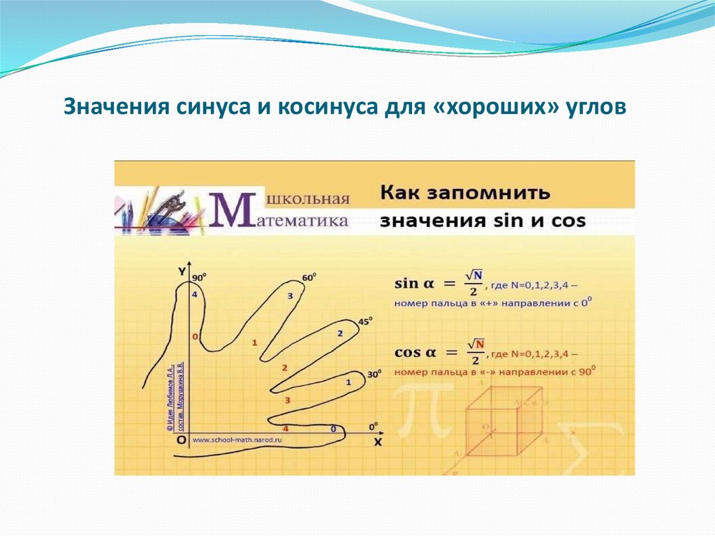Значения синуса и косинуса для «хороших» углов13.