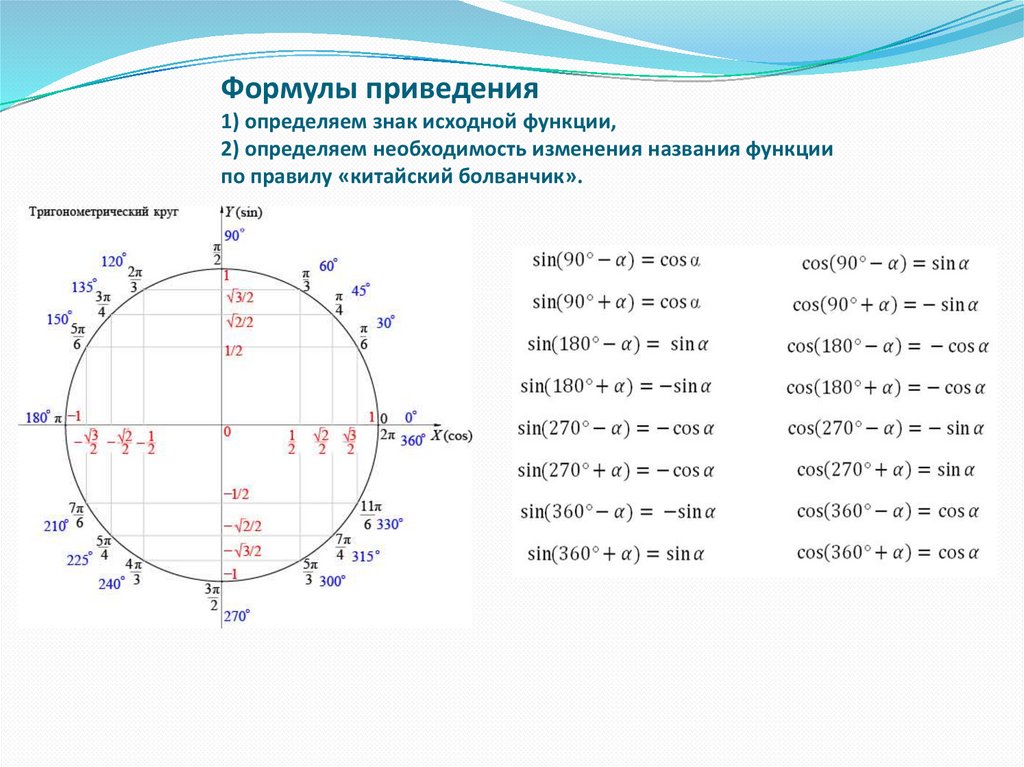 Формулы приведения1) определяем знак исходной функции,