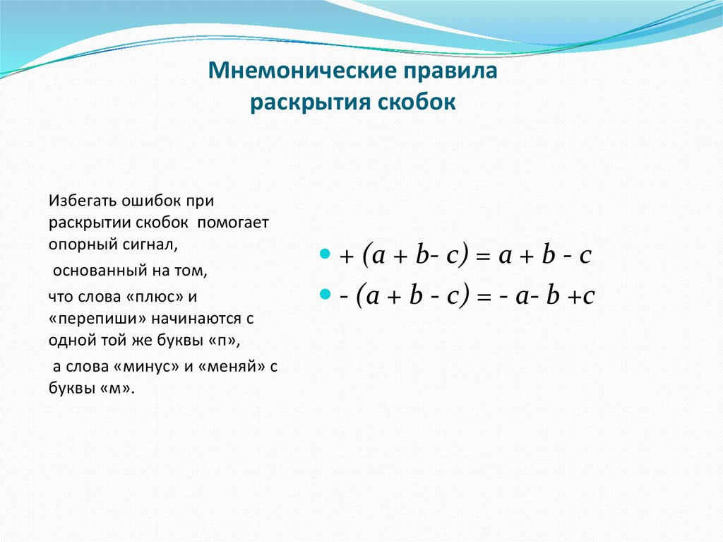 Мнемонические правилараскрытия скобок