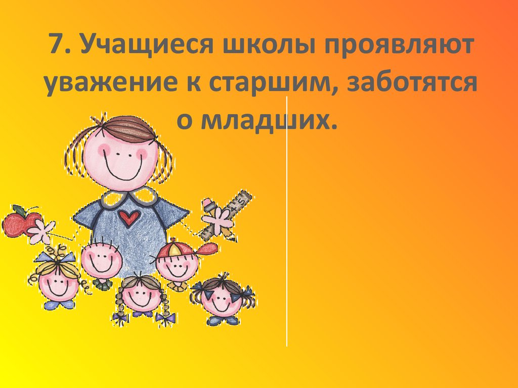 7. Учащиеся школы проявляютуважение к старшим, заботятся
