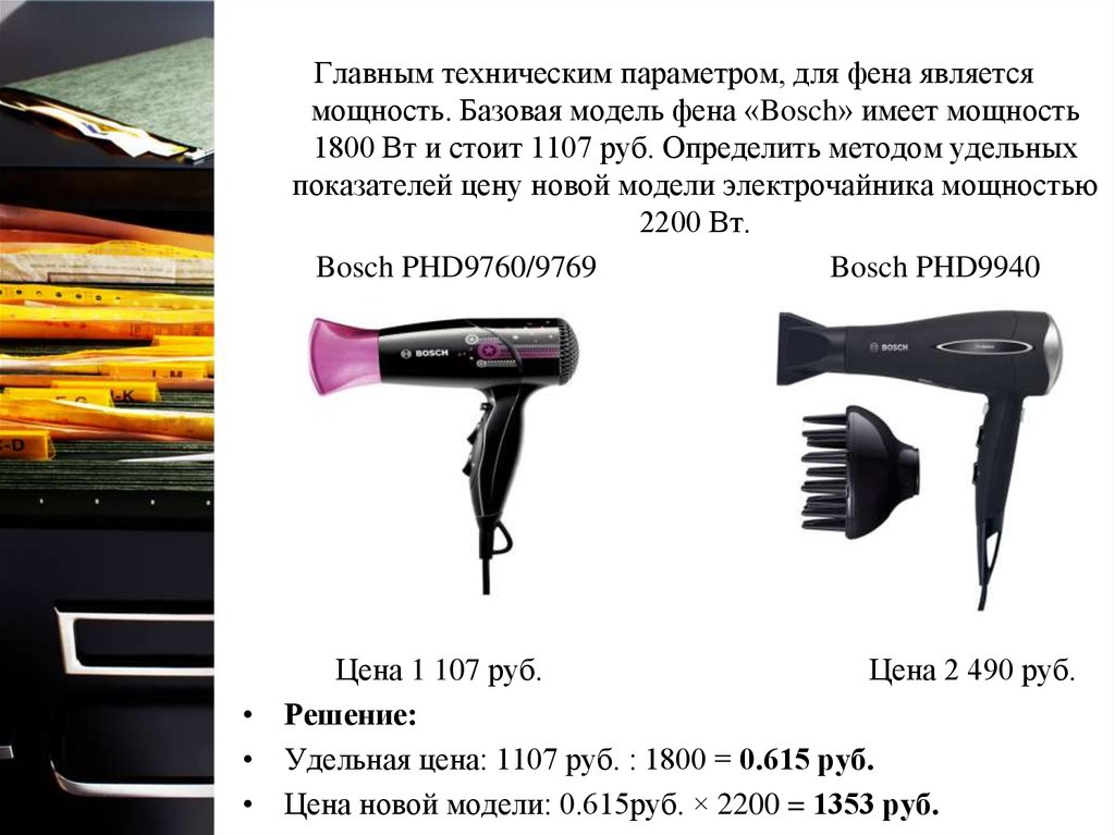 Главным техническим параметром, для фена являетсямощность. Базовая модель фена «Bosch» имеет мощность