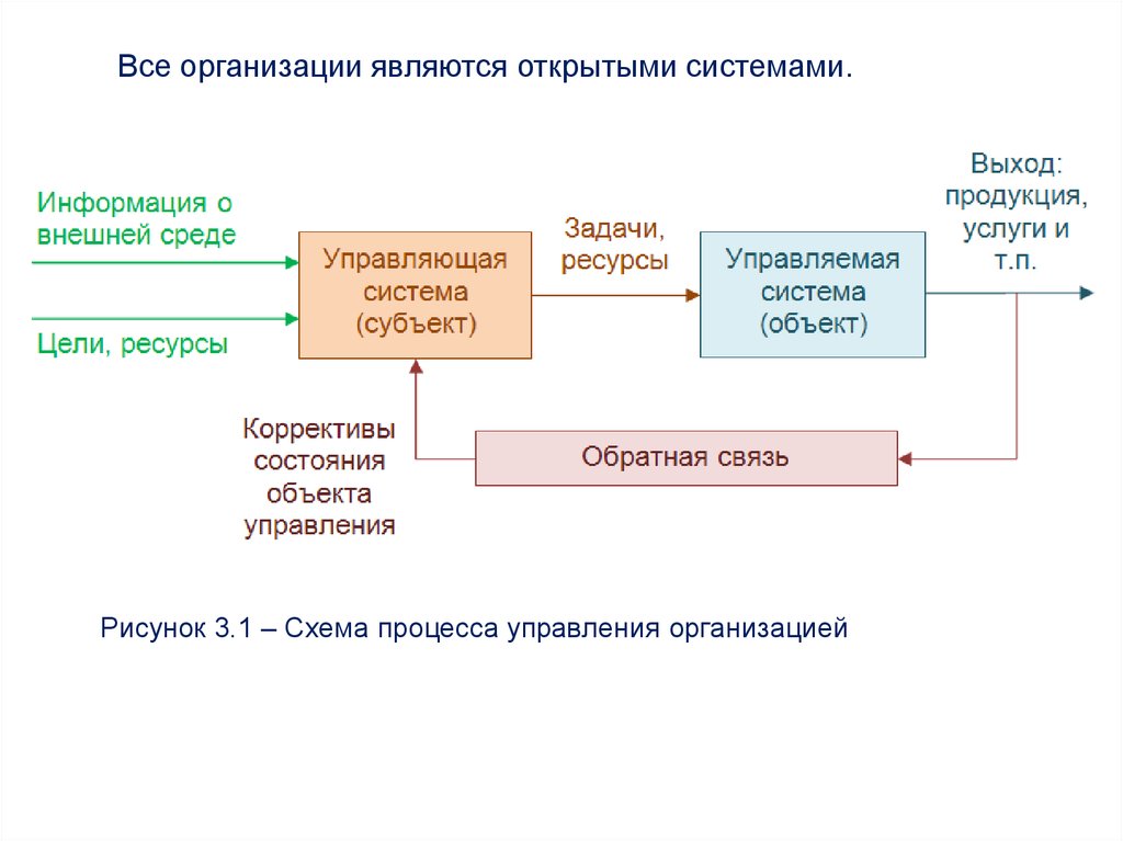 Все организации являются открытыми системами.Рисунок 3.1 – Схема процесса управления организацией