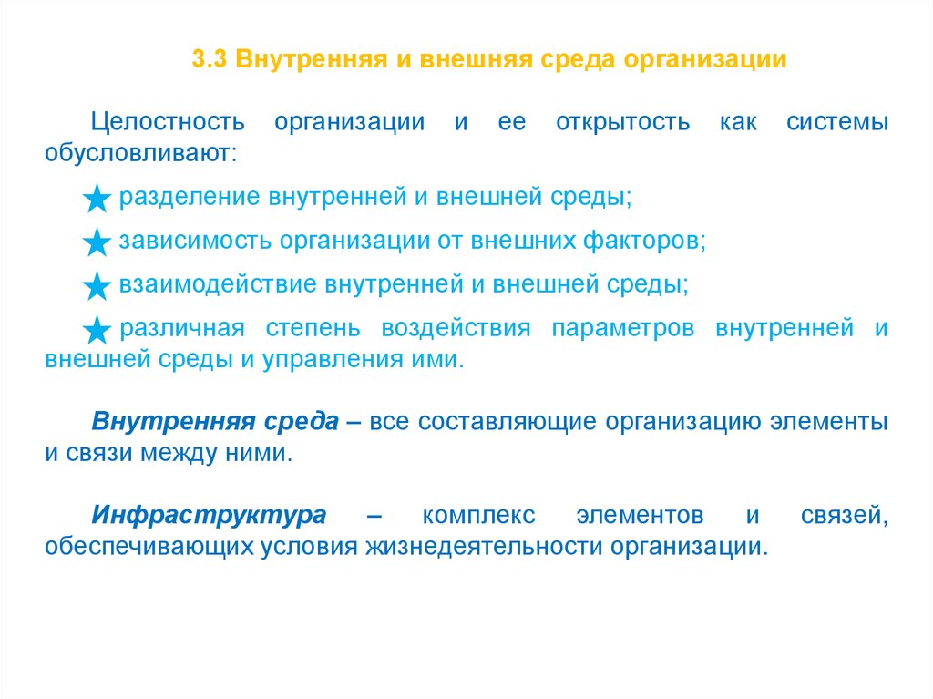 3.3 Внутренняя и внешняя среда организацииЦелостность