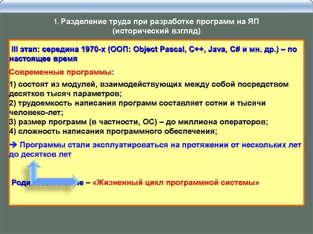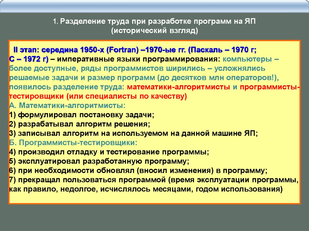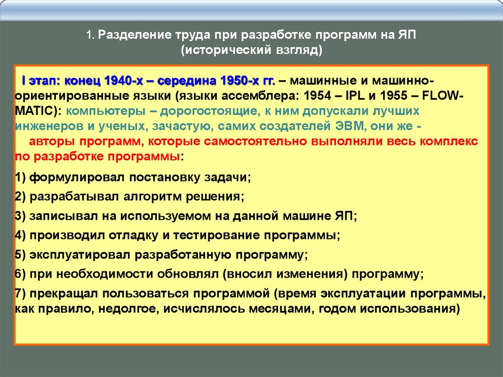 1. Разделение труда при разработке программ на ЯП(исторический взгляд)