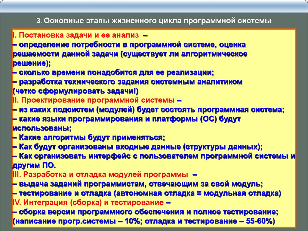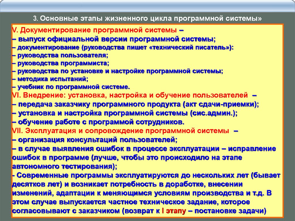 3. Основные этапы жизненного цикла программной системы»V. Документирование программной системы –