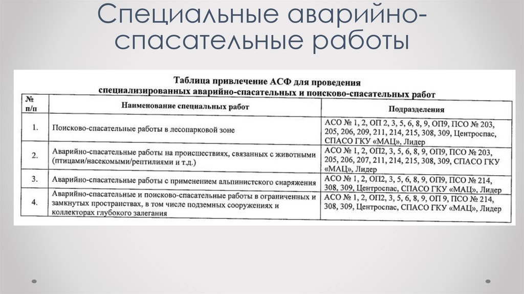 Специальные аварийноспасательные работы11.