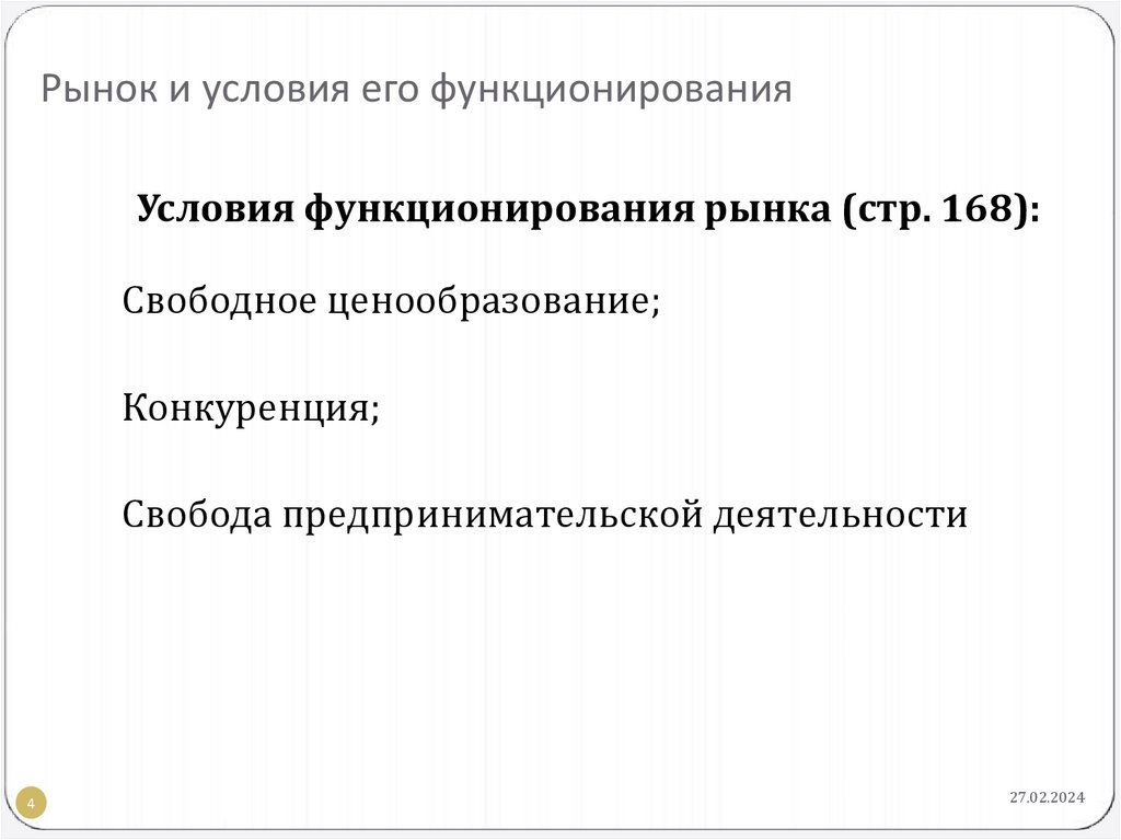Рынок и условия его функционированияУсловия функционирования рынка (стр. 168):