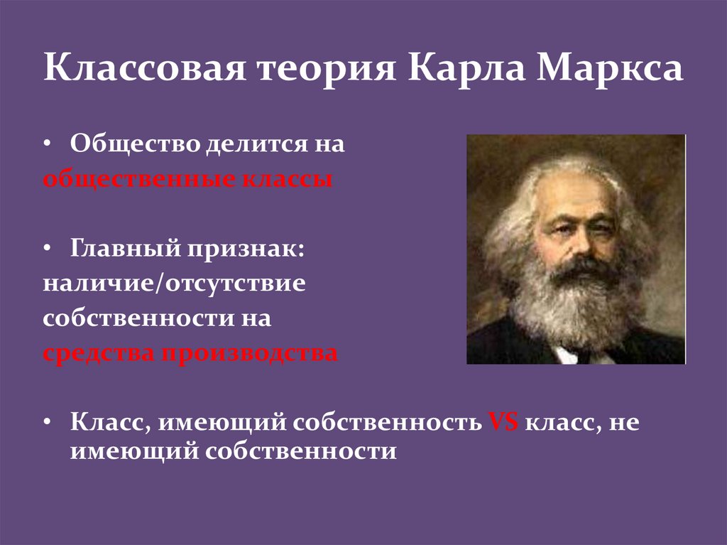 Классовая теория Карла Маркса• Общество делится на