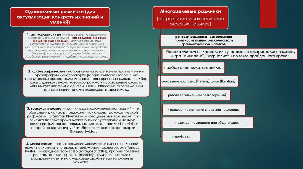 Целью речевой зарядки будет организация речевой тренировки, речемыслительной деятельности,