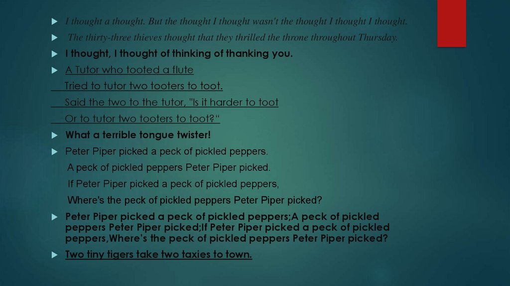буквами); - скороговорки (Tongue Twisters — при