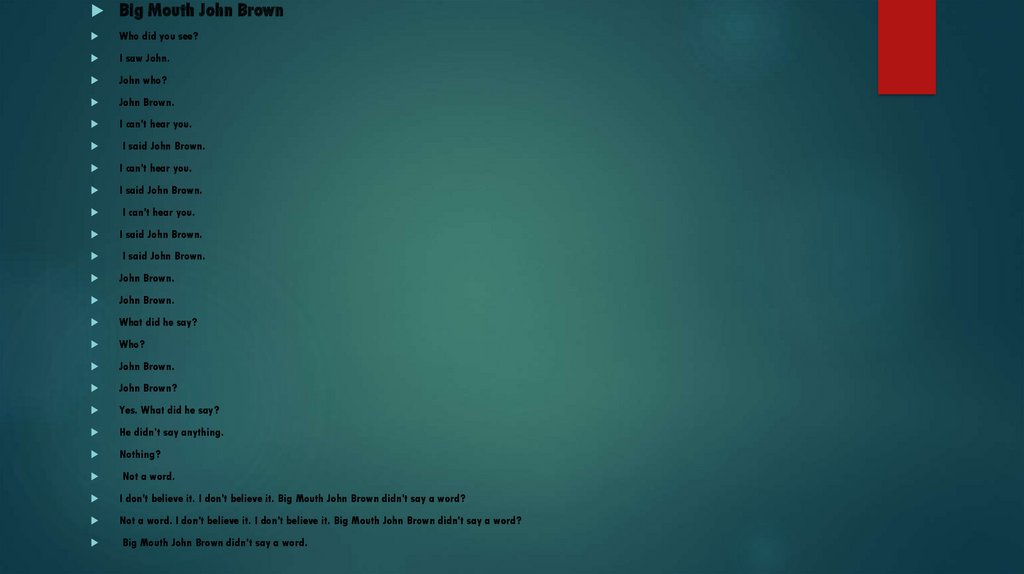 Big Mouth John BrownWho did you see?