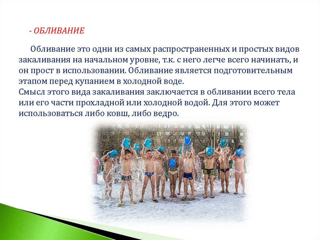 - ОБЛИВАНИЕОбливание это одни из самых распространенных и простых видов
