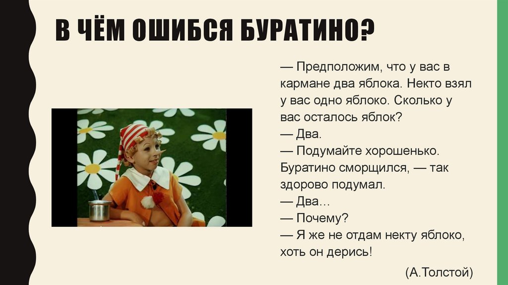 В ЧЁМ ОШИБСЯ БУРАТИНО?— Предположим, что у вас в