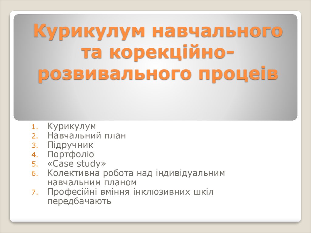 Курикулум навчальногота корекцiйнорозвивального процеiв