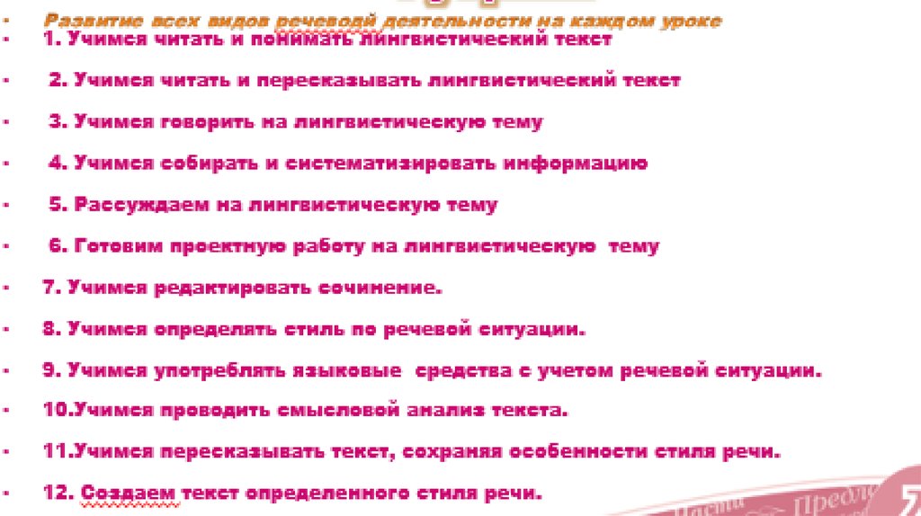 1. ЛИНИЯ РЕЧИ в преподавании русского языка в школе