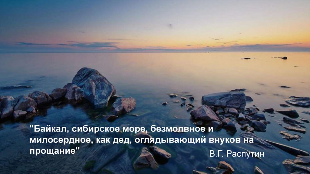 "Байкал, сибирское море, безмолвное имилосердное, как дед, оглядывающий внуков на