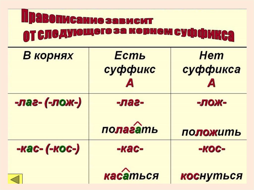 Буквы –о-/-а- в корнях кос-/кас-, гар-/гор-, раст/рост-, лаг-/лож