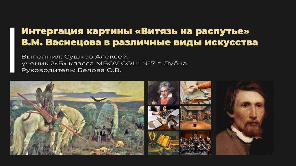 Интергация картины «Витязь на распутье» B.М. Васнецова в различные виды искусства