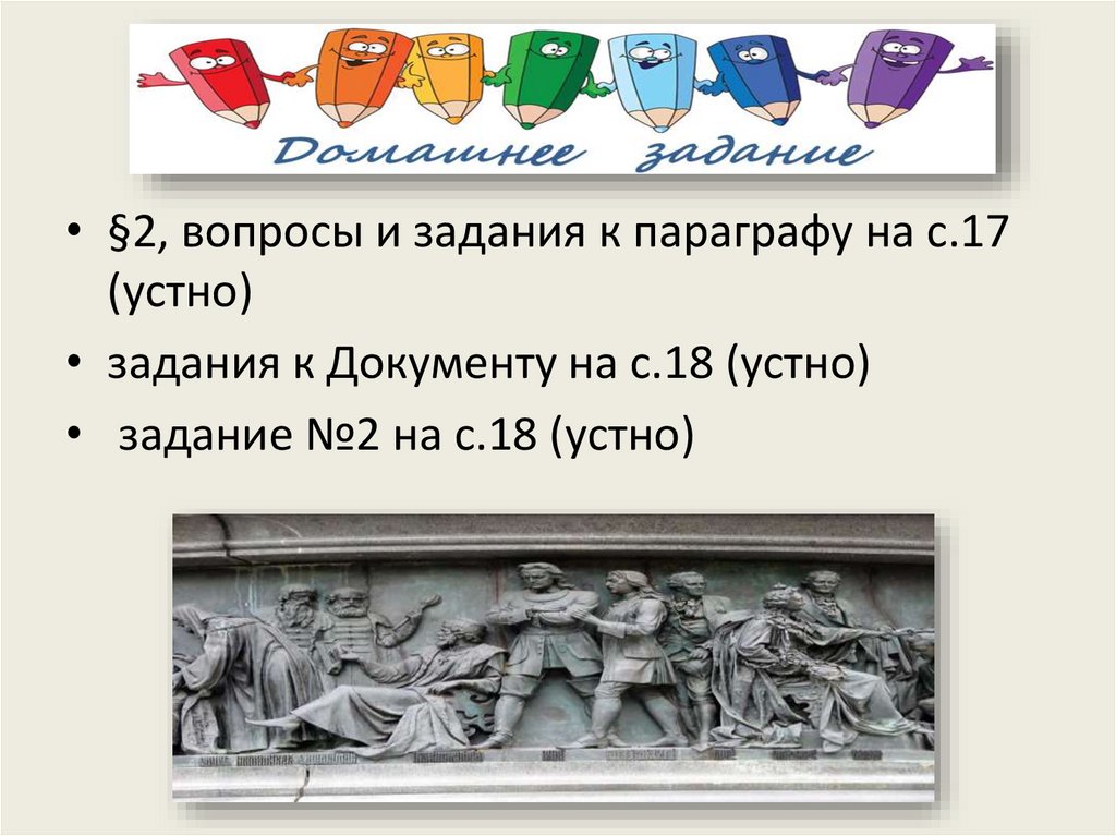 • §2, вопросы и задания к параграфу на с.17(устно)