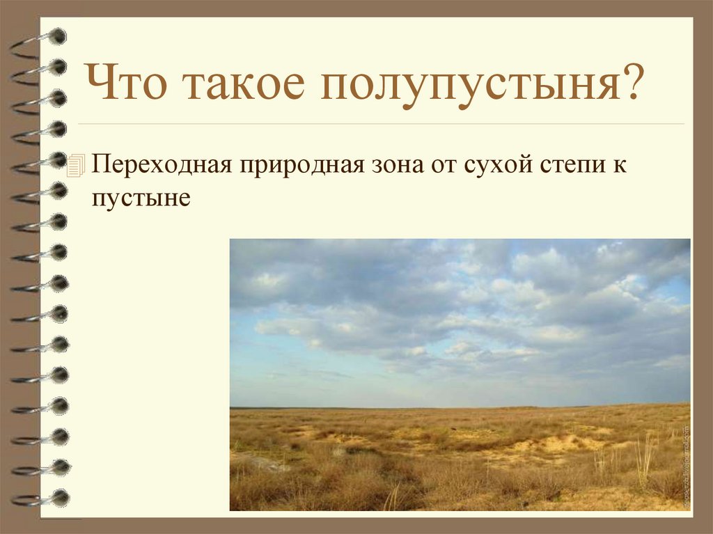 Что такое полупустыня?Переходная природная зона от сухой степи к
