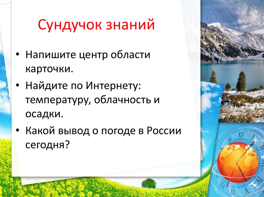 Сундучок знаний• Напишите центр области