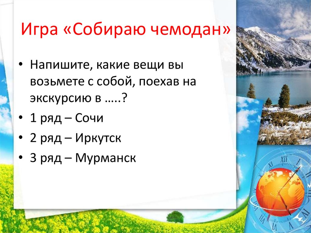 Игра «Собираю чемодан»• Напишите, какие вещи вы