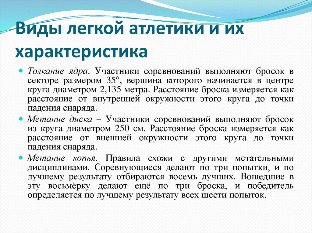 Виды легкой атлетики и иххарактеристика