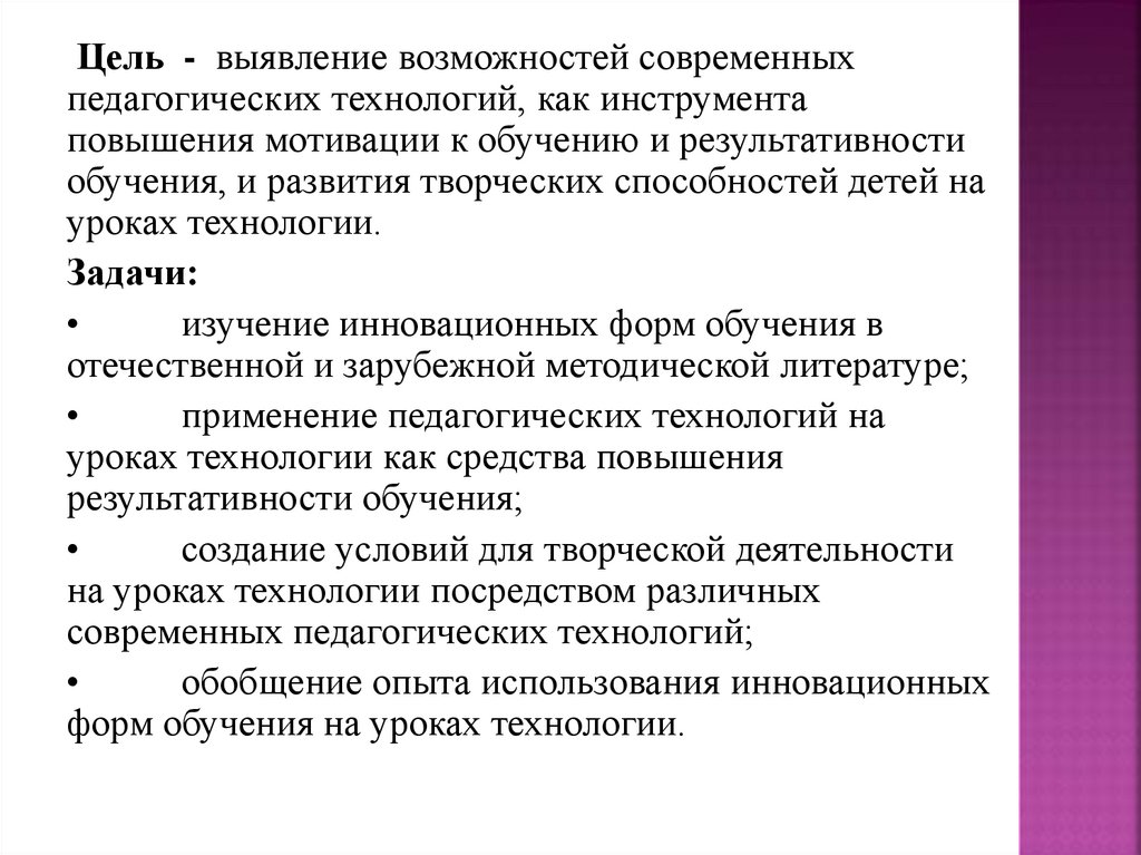 Цель - выявление возможностей современныхпедагогических технологий, как инструмента