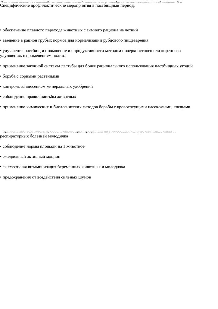Для оптимизации местообитания популяций животных и профилактики массовых заболеваний вСпецифические профилактические мероприятия в пастбищный период: