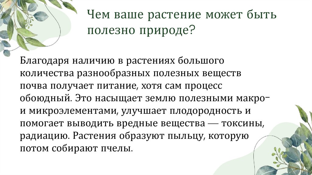 обоюдный. Это насыщает землю полезными макрои микроэлементами, улучшает плодородность и