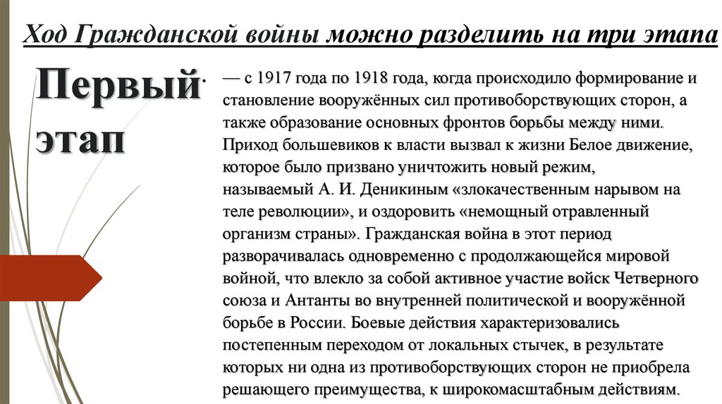 Ход Гражданской войны можно разделить на три этапаПервый