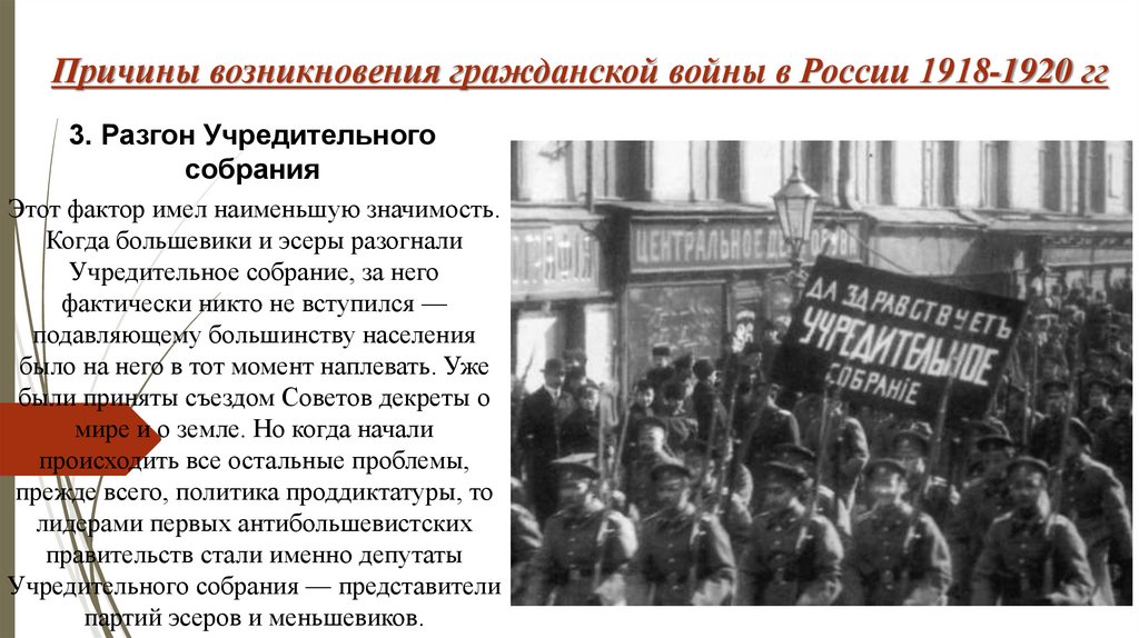Причины возникновения гражданской войны в России 1918-1920 гг3. Разгон Учредительного