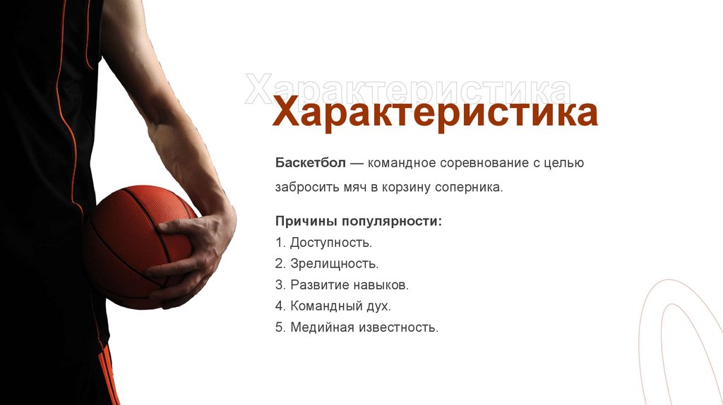 ХарактеристикаБаскетбол — командное соревнование с целью
