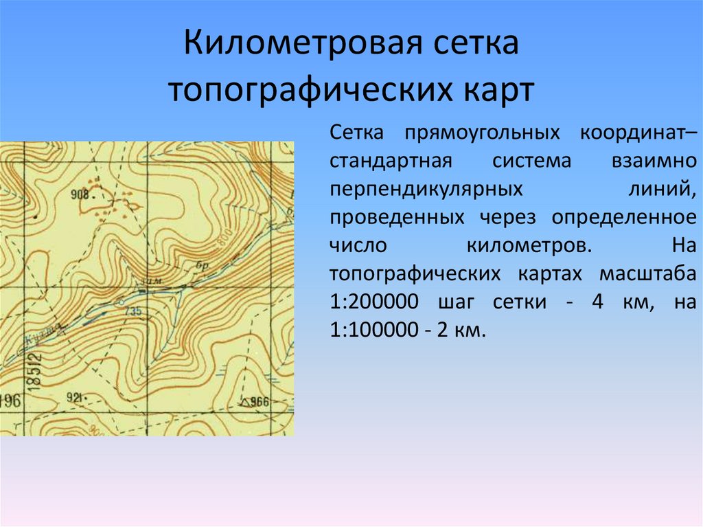 Километровая сеткатопографических карт