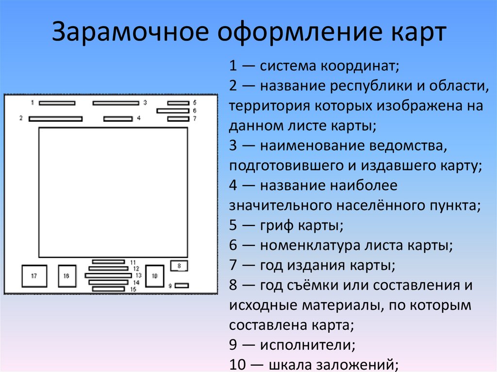 Зарамочное оформление карт1 — система координат;