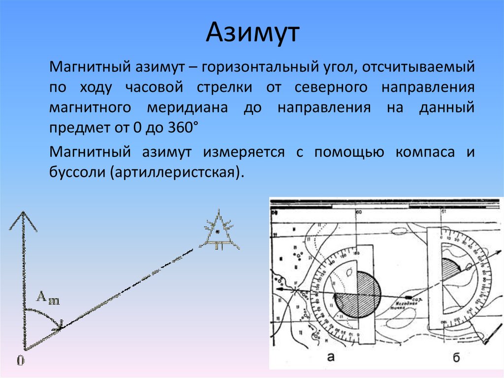 АзимутМагнитный азимут – горизонтальный угол, отсчитываемый