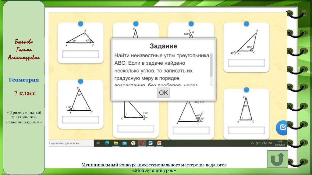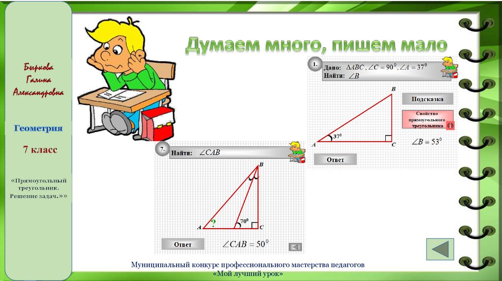 Тема урока: «Прямоугольный треугольник.Решение задач»