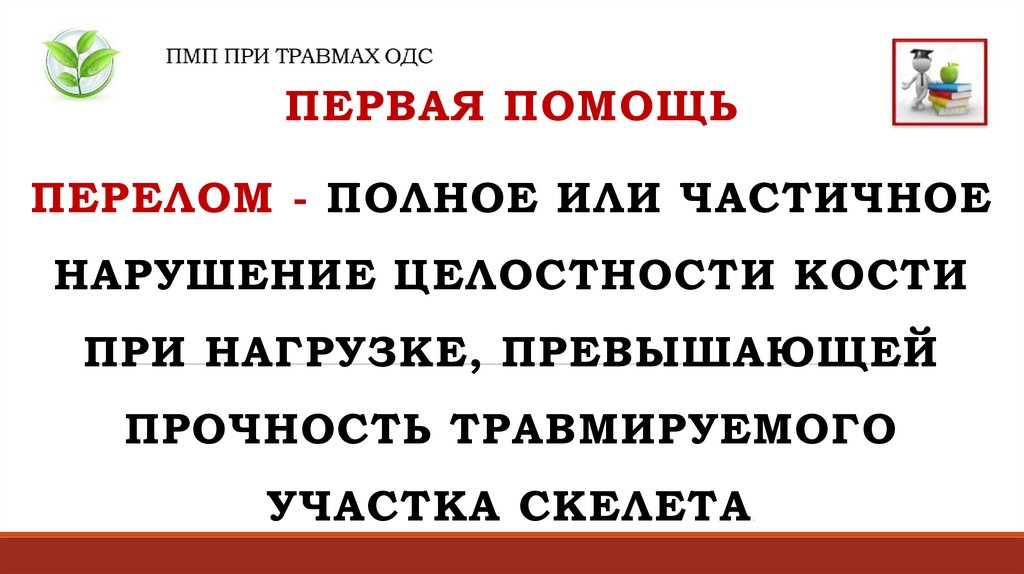 ПЕРВАЯ ПОМОЩЬПЕРЕЛОМ - ПОЛНОЕ ИЛИ ЧАСТИЧНОЕ