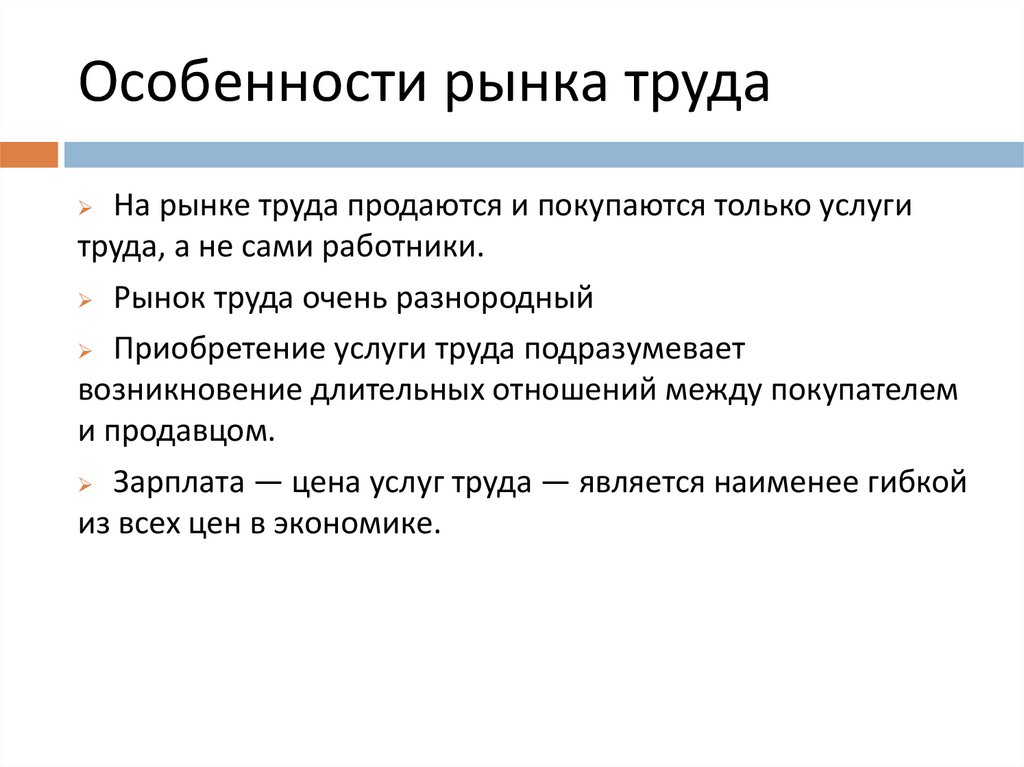 Особенности рынка трудаНа рынке труда продаются и покупаются только услуги