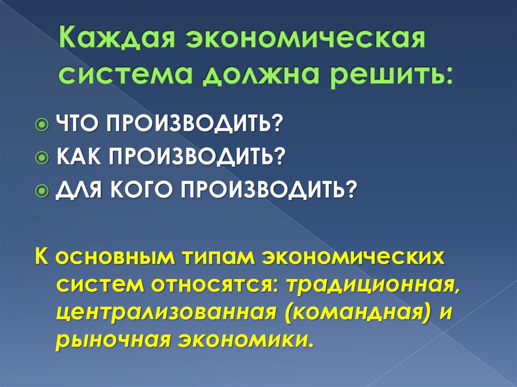 Типы экономических систем. Что производить?