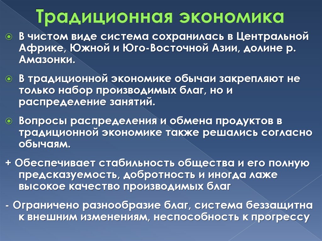 традиционной экономике также решались согласно