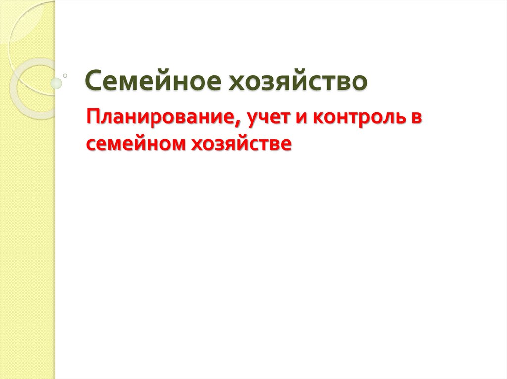Семейное хозяйство. Планирование, учет и контроль в семейном хозяйстве